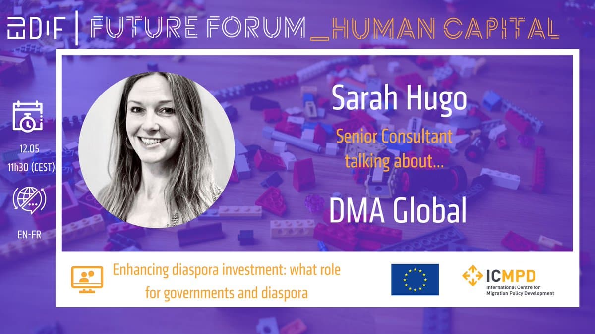 In May 2022, Sarah Hugo, a Senior Consultant at DMAG, took part in a Roundtable at the European Union’s Global Diaspora Facility’s (EUDiF) ‘Future Forum’. The Roundtable focussed on enhancing diaspora investment, and what the role is for diaspora and governments.